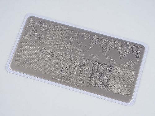 Пластина для стемпинга с кружевными узорами создана специально для эффектного френч-маникюра. В ней вы найдете изящные элементы для оформления линии улыбки, а также ажурные орнаменты для дополнения дизайна!