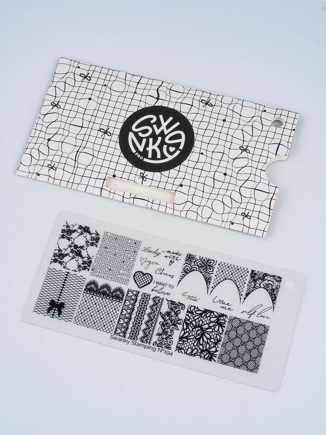 Рекомендуем использовать пластины с оригинальными штампами и лаками Swanky Pro для наиболее качественной передачи рисунка.